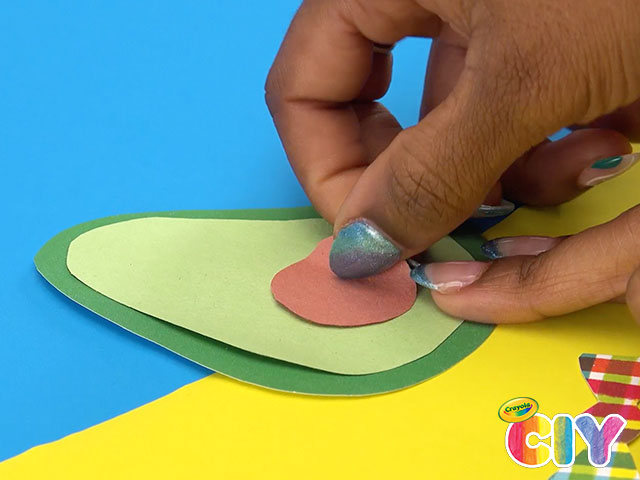 With a Crayola Glue Stick, glue the light green avocado piece to the dark green avocado piece.