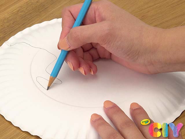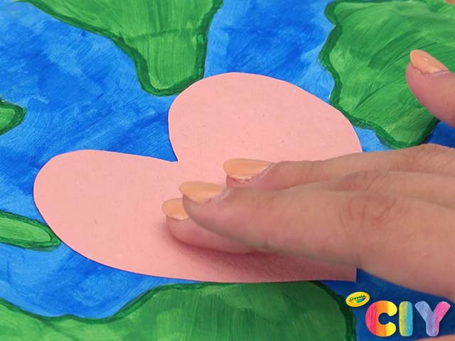 Gently wrap hands over top of paper plate and glue to plate near edges of heart.