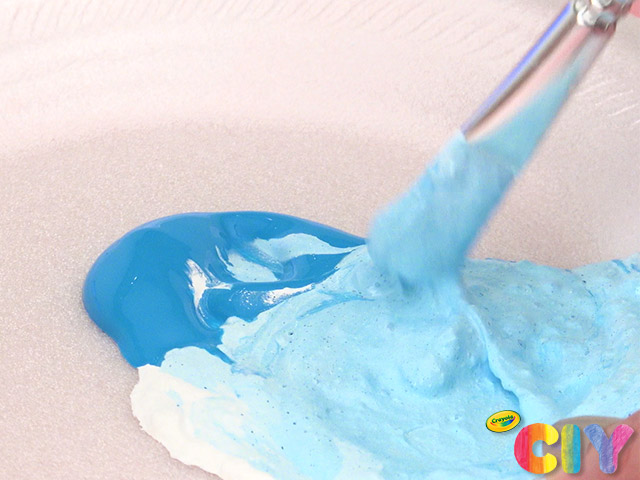 Mix paint together with paint brush to create pastel shade.