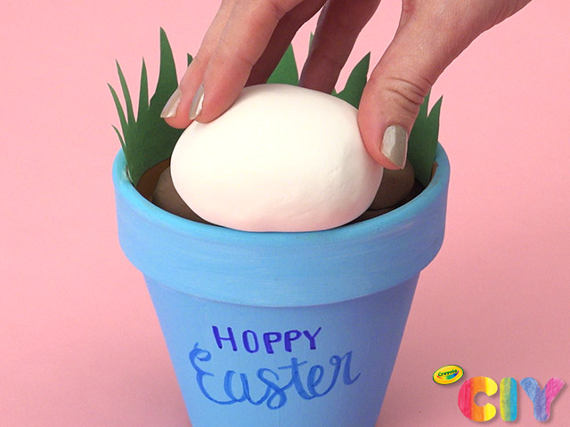 Cut out a patch of construction paper grass. Glue to inside of flower pot.