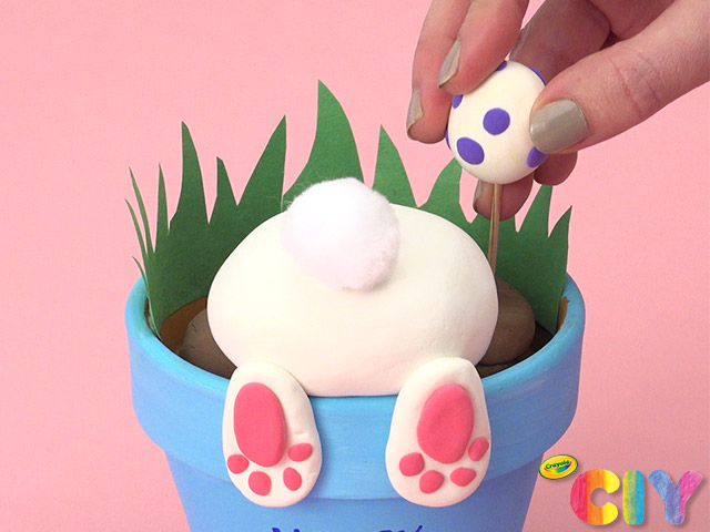 Glue a pom-pom to Model Magic to create bunny’s tail.