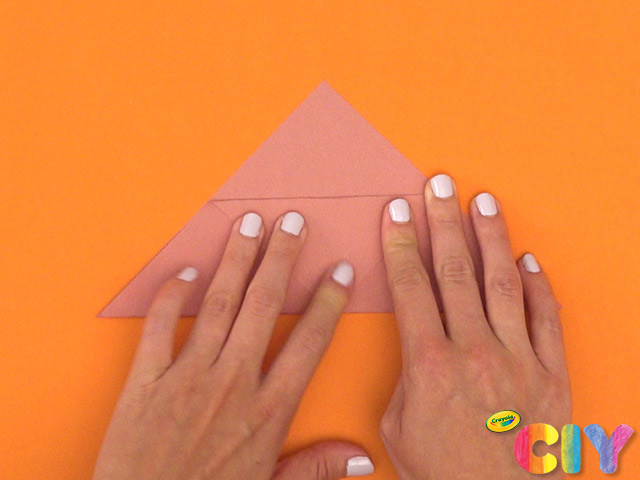 Fold in half to create triangle. Rotate so long edge is at bottom and right angle faces up.