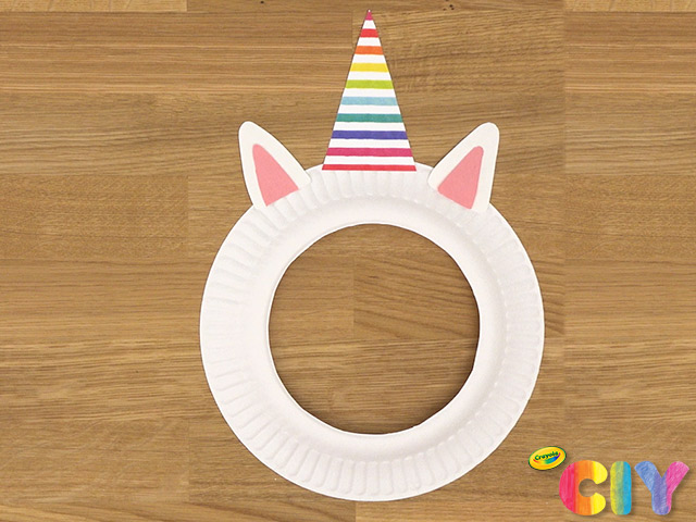 Draw 2 unicorn ears on center of plate. Cut out.