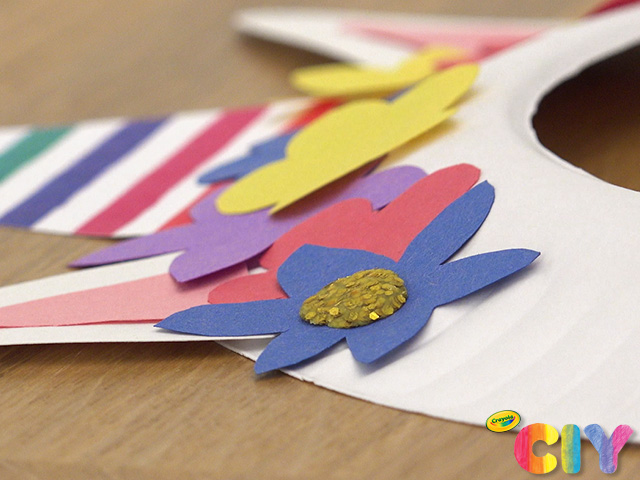Cut out construction paper flowers and glue to plate as flower crown. Dry all glue steps for 2 hours.