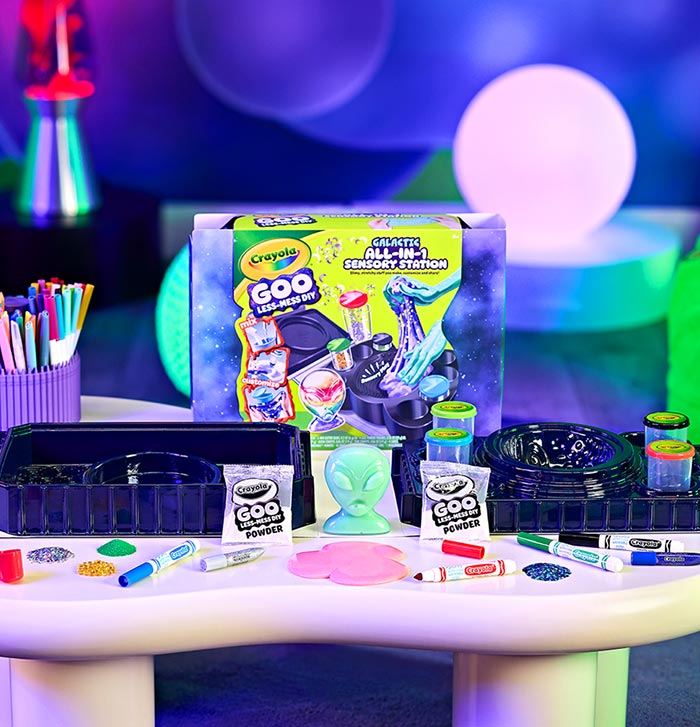 Get ready to mix, swirl, and stretch your way through a galaxy of goo! This all-in-one station comes loaded with everything kids need to create cosmic slime concoctions with goo powders, glittery mix-ins, and Crayola markers for custom colours. Less mess, no stress, just out-of-this-world sensory fun.