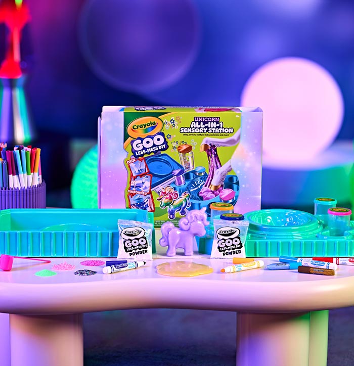 Use Crayola washable markers and mix-ins like beads and glitter to create one-of-a-kind goo that’s as bold as your imagination.