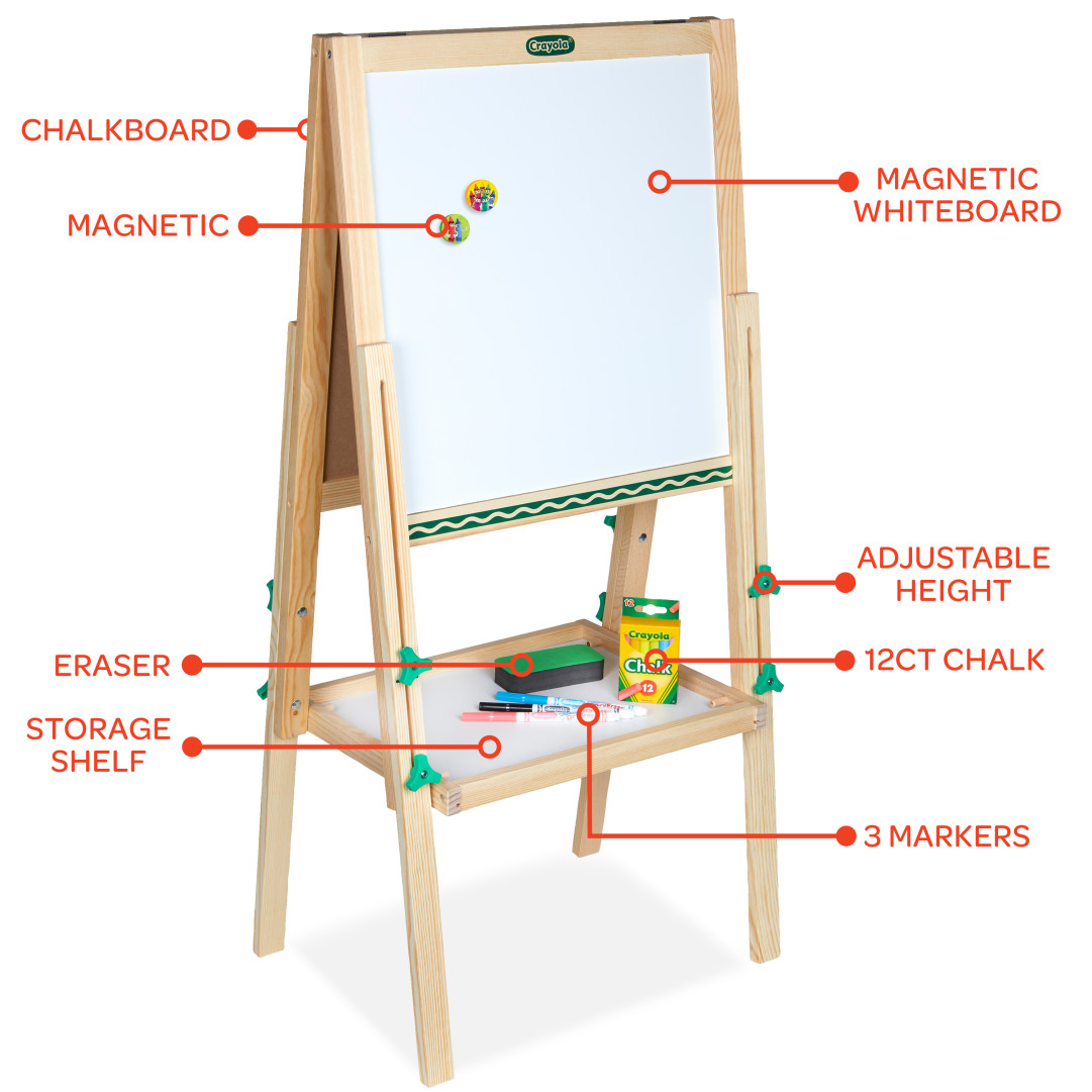 Crayola® Kid’s Wooden Art Easel – Dual-Sided, Whiteboard & Chalkboard