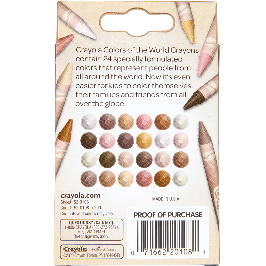 • INCLUDES: 24 Colors of the World skin tone Crayola Crayons.