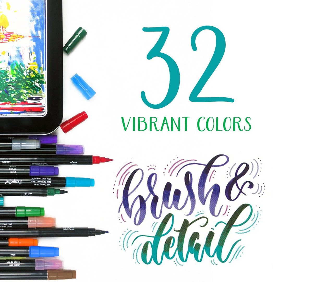 Includes 16 dual-tip markers for a total of 32 complementary colors.