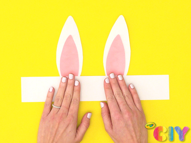 Add glue to bottom of ears and place paper strip on top to create headband.