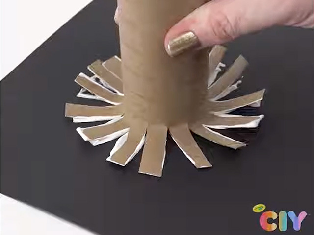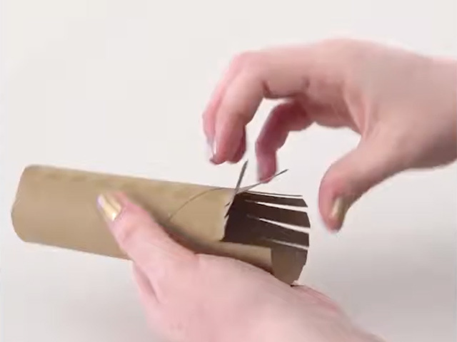 Carefully cut the bottom half of each cardboard tube into thin strips all the way around the tube. Fan out the cut strips.
