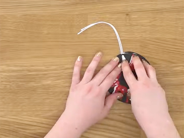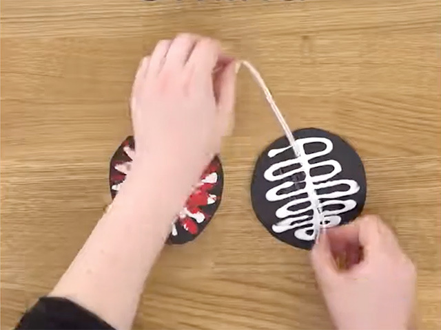 Sandwich the string between the two pieces of cardstock, with a colourful firework explosion displayed on each side.