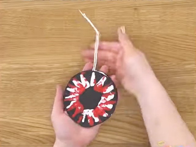 Apply Crayola School Glue to the back of each piece of cardstock and place string for hanging the decoration on the back of one piece of the cardstock.