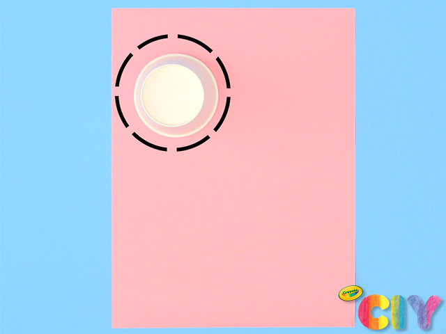 Using cup as guide, cut out construction paper circle slightly bigger than cup opening.