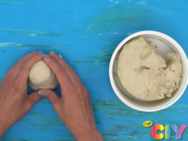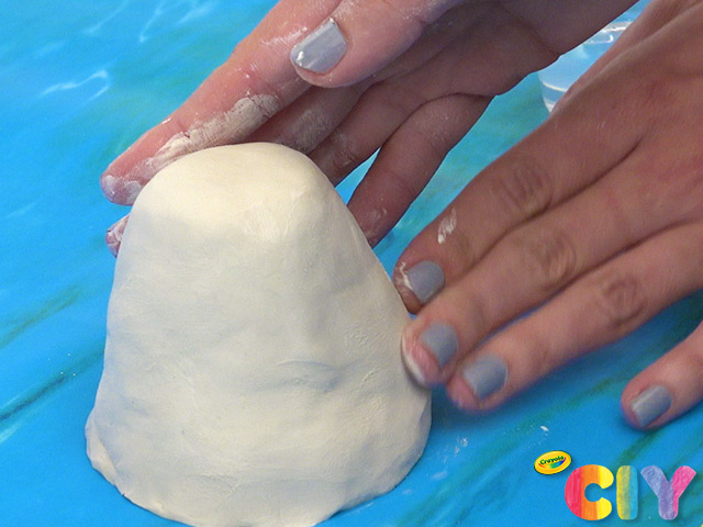 Form a large piece of clay into rounded cone. Use hard surface to flatten bottom.