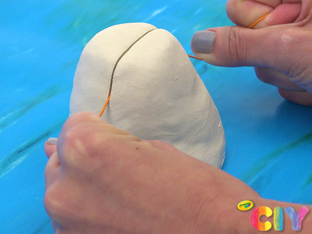Use string to slice through clay, stopping approximately 1” from flattened bottom.