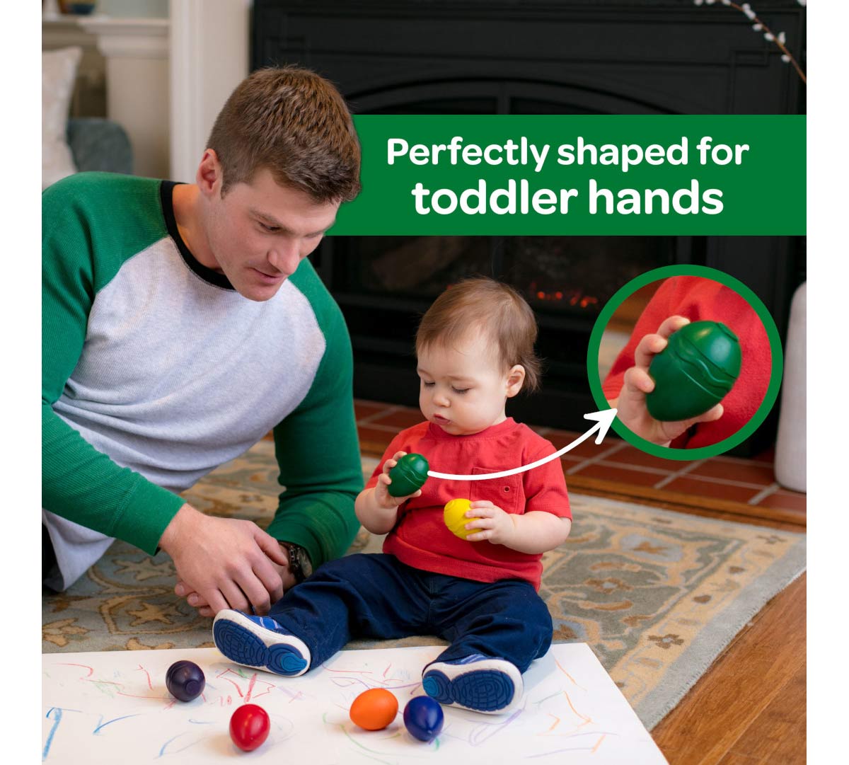 ERGONOMIC DESIGN: Designed to fit toddlers' palms so they can easily make their first marks.