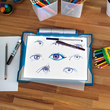 • A great gift for boys, the Crayola Light-Up Tracing Pad in Blue features over 35 art supplies to aid in creative play. Using the included tracing sheets, or the hundreds of downloadable online images, kids ages 6 and older can create infinite scenes and draw like a pro. This drawing kit for kids includes a Graphite Pencil and Short Colored Pencils for drawing, illustrating, and coloring. The Tracing Pad runs on three AA batteries (not included) and makes drawing easy, fun, and accessible.